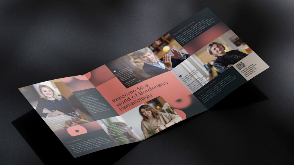 We created Borderless Hematology — a positioning and design concept symbolizing openness, collaboration, and shared purpose. A bold new identity, digital platform, and event branding system brought the idea to life across all touchpoints.
