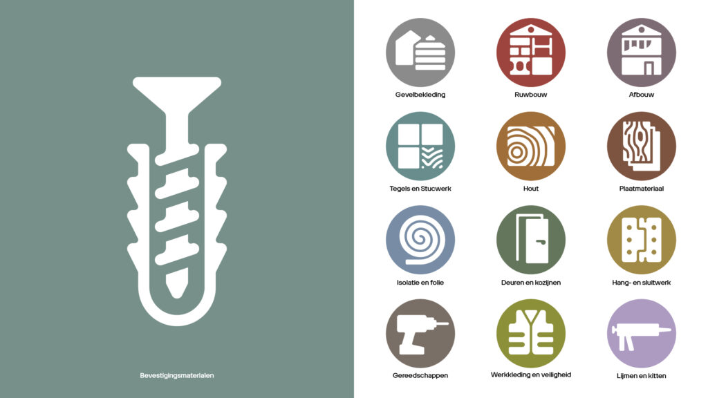 A modular identity system was built around stacked layers – a visual metaphor for how construction works. In stores, a new concept combines clear routing, personal contact, and speed. Digitally, a new webshop and app offer the same experience: fast, intuitive, and connected to builders. Smart filters, live stock, and project tools make ordering seamless. A brand platform, toolkit, and workshops ensured consistent rollout and internal alignment.