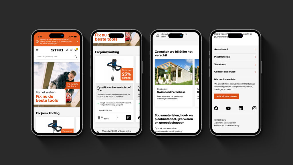 Customers experience one clear brand wherever they meet Stiho: online, in-store, or on-site. The new store formula is clear and human. The digital journey is personal and fast.